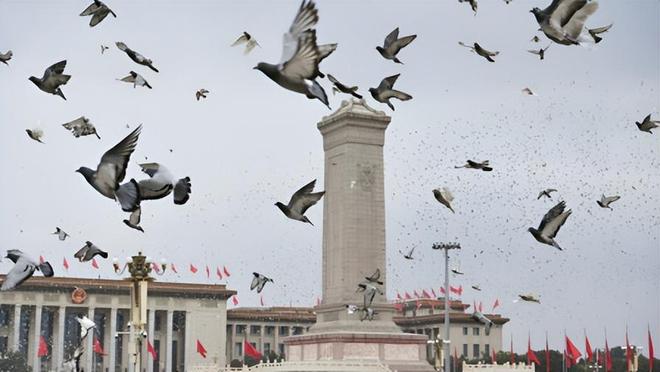 在广场的四周,都会安排和平鸽同时起飞。如果是在昌平、怀柔借来的鸽子,就会安排在广场南面。这样鸽子就会向着自己家的方向北面飞行,而如果是北面借来的鸽子,就放在广场的南面。